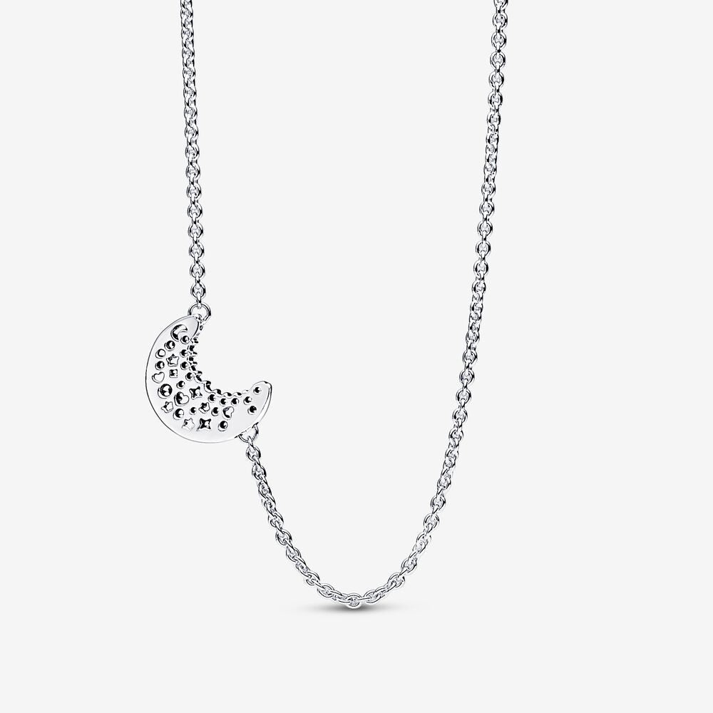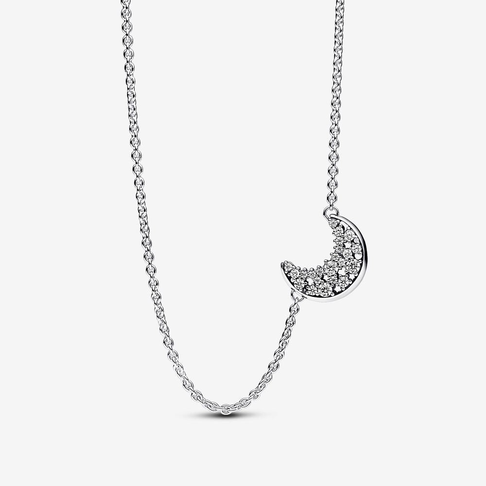 Traga a magia do céu noturno para o seu visual com o Colar Lua Crescente Cintilante. O pingente de lua crescente em prata esterlina é definido com pedras em diferentes tamanhos, apresenta recortes redondos, em forma de estrela e coração e é preso à corrente por dois anéis de salto. O crescente pende em um leve ângulo, é ajustável a dois comprimentos e apresenta um pequeno detalhe de estrela de quatro pontas no fechamento. Este colar apresenta um intrincado design lunar, que combina o romance místico do amor e o céu noturno, tornando-o o presente perfeito para um ente querido.