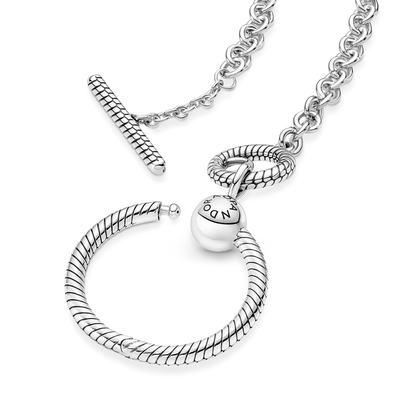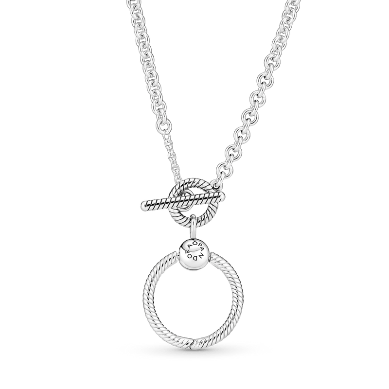 Ande com sua história perto do coração com o Colar O Pendente Com Fecho T. Pela primeira vez combinamos dois porta-charms icônicos em um colar para que você leve a personalização a outro nível. Combine seis dos seus charms, pendentes ou charms pendentes preferidos no colar, três na corrente e três, no máximo, no pequeno O pendente. Abra o O pendente pelo fecho esférico. Abra a corrente girando o fecho T. Para colocar charms, pendentes ou charms pendentes, basta deslizá-los pelo fecho T.