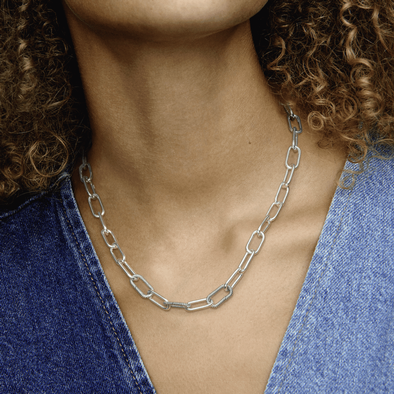 Mostre ao mundo o que você faz com o colar de corrente de Link Pandora ME. Este colar robusto apresenta três Link texturizados de cadeia que podem ser estilizados com seus charms de estilo Pandora ME favoritos. Cada link pode ser estilizado com até oito mini dangles Pandora ME ou dois medalhões. O design robusto em prata 925 adiciona uma vibração ousada a qualquer look e pode ser misturado e remisturado para combinar com qualquer roupa.