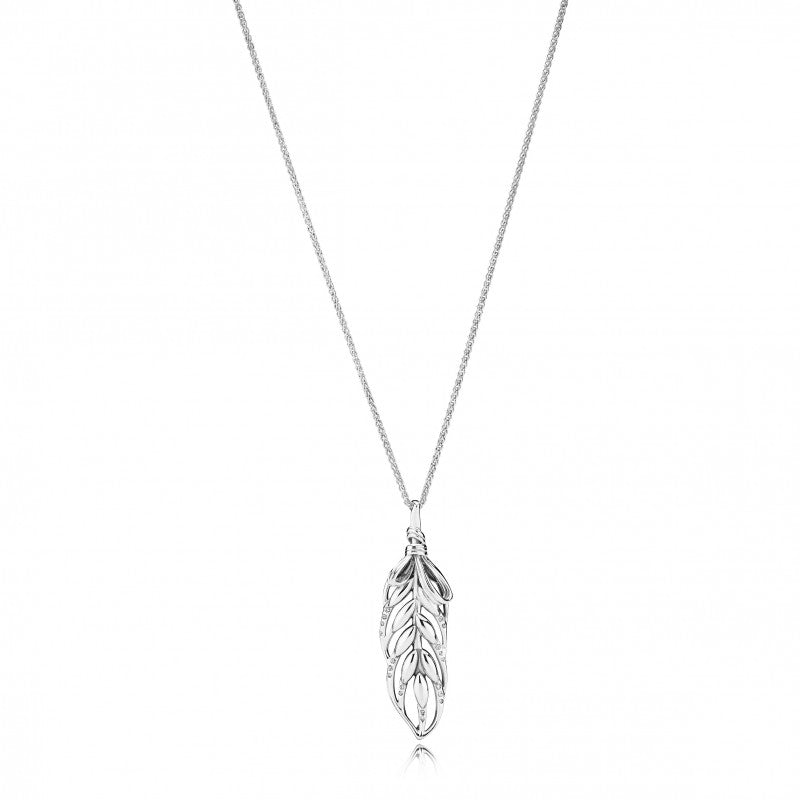 A natureza é um elemento duradouro nos designs de joias. Com a forma de uma espiga de trigo, símbolo da prosperidade e renovação da natureza, este elegante colar de pingente é equipado com um fecho deslizante para a queda perfeita. As pedras de zircônia cúbica destacam seu formato de pena. Faça camadas com outras peças favoritas para criar um visual pessoal com significado mais profundo.