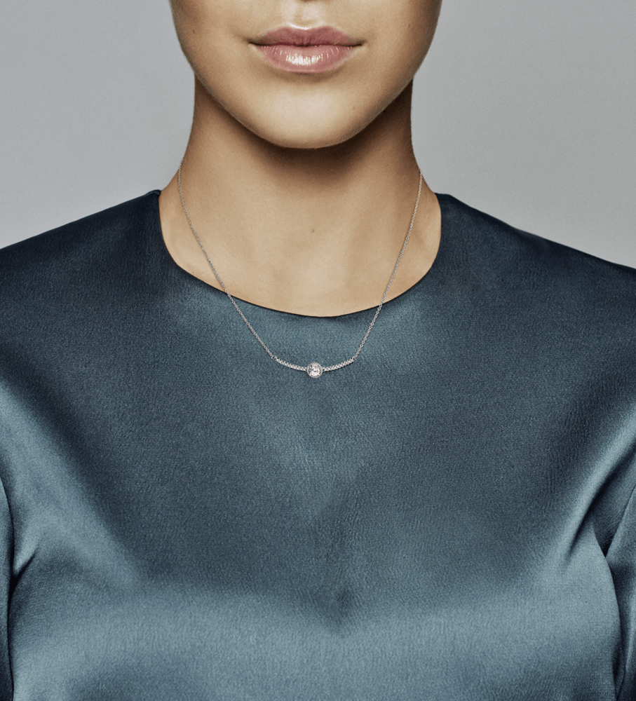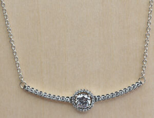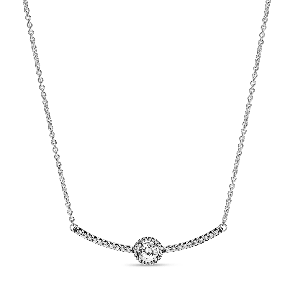 Estilos refinados e discretos que parecem simples geralmente têm a expressão mais marcante e sua atemporalidade surpreende por décadas. Experimente a essência da elegância com nosso collier de prata esterlina com detalhes de zircônia cúbica transparente, pois combina perfeitamente o estilo clássico de pingente solitário com um detalhe de design de barra moderno e ousado para um visual elegante e contemporâneo. Use este estilo sofisticado sozinho e deixe todas as partes de sua personalidade brilharem ou sobreponha-se a outras peças em diferentes comprimentos para um visual atraente.