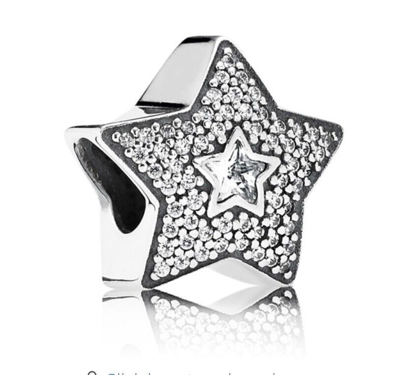 Conta de prata com zircónias estrela e pavé de zircónias.