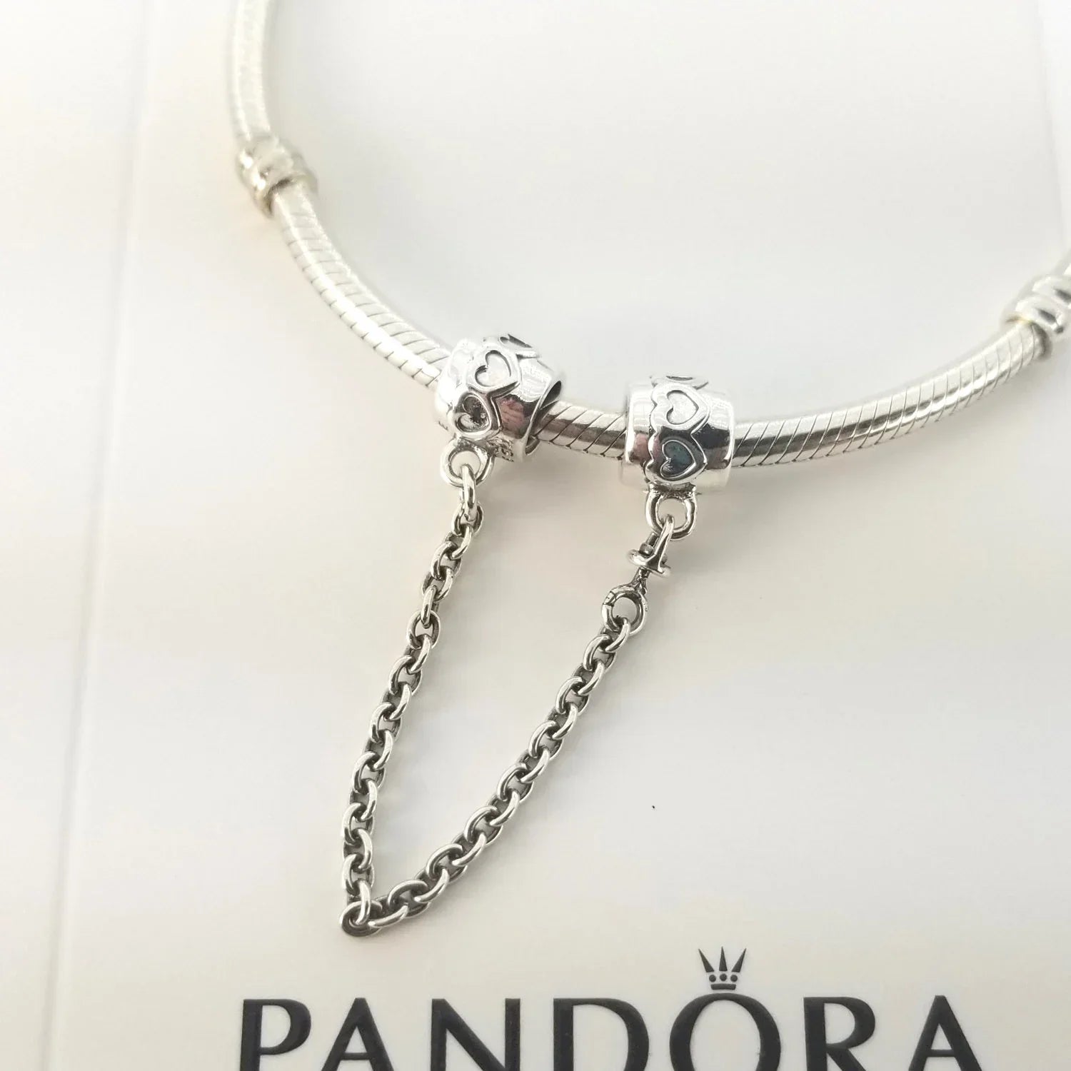 Feito inteiramente de prata esterlina 925 ALE. Mostra corações polidos - símbolo do amor com o logotipo - a coroa e o número 20 simbolizando os 20 anos da série Moments.