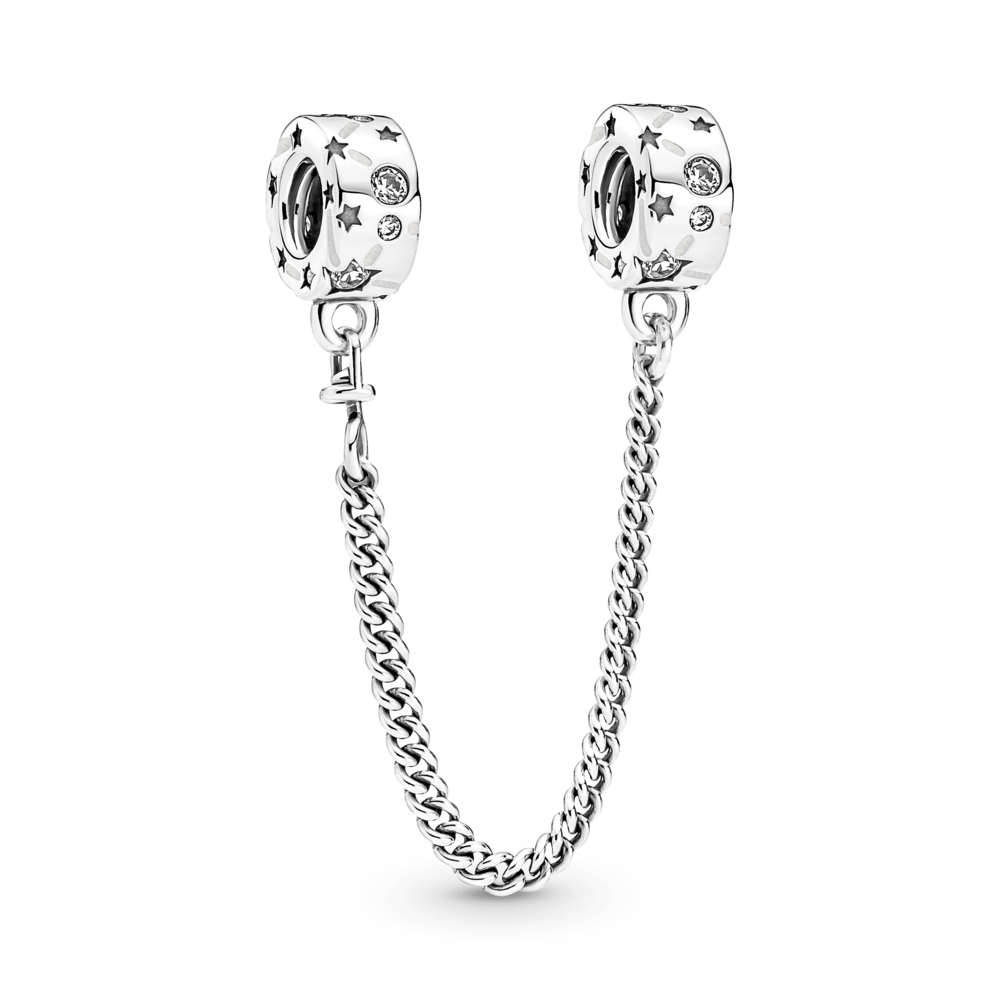 É tão moderno que prende com segurança joias gravadas com memórias preciosas na pulseira Moments. Esta joia especialmente projetada também é adornada com pedras coloridas de zircônias cúbicas para o toque final de um visual exclusivo. O fecho giratório da corrente evita o emaranhamento e o clipe de silicone oculto ajuda a mantê-la na posição perfeita na corrente.
