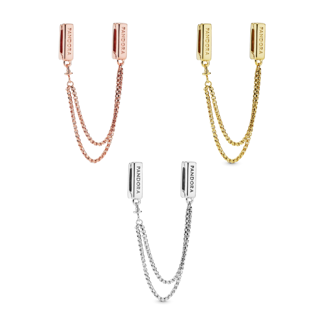 Complete seu visual com esta corrente de segurança projetada para combinar com a pulseira Reflexions. Os clipes em ambas as extremidades são conectados por duas correntes de diferentes comprimentos, balançando elegantemente como cortinas, e o design é simples e moderno. Equipado com uma articulação giratória para evitar que a corrente dobre e um clipe longo com almofadas de silicone para mantê-lo no lugar. Mostre seu estilo pessoal tirando esta corrente de segurança depois de adicionar o charme.