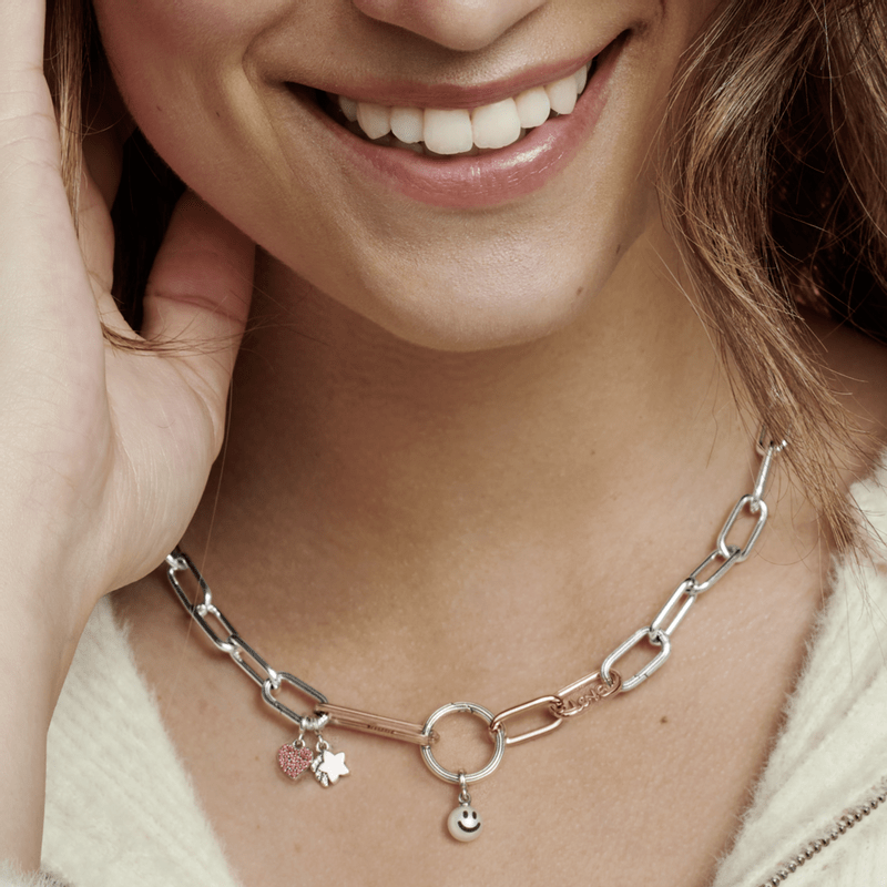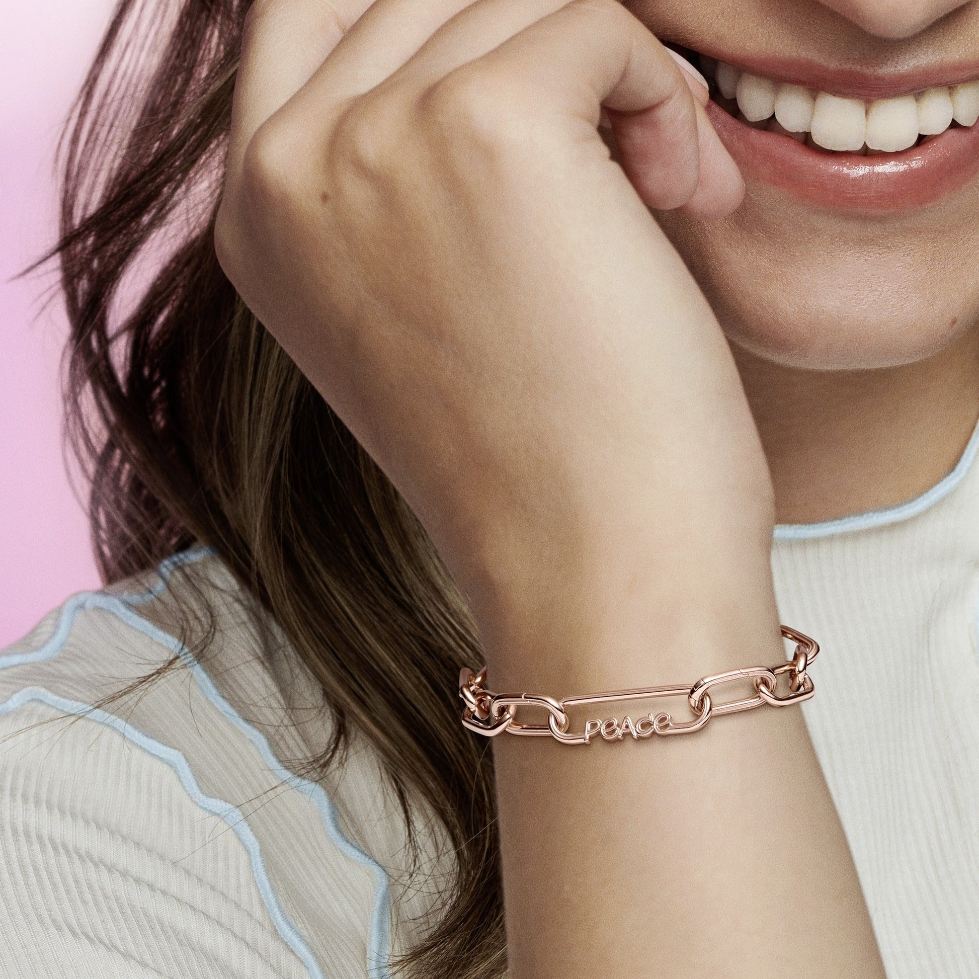 Adicione significado aos seus looks anexando este link de palavras de estilo entre conectores de estilo em suas pulseiras de corrente de link, colares - você pode até torná-lo mais pessoal com um medalhão. Dica de estilo: um link de palavras de estilo mede o mesmo comprimento que um link duplo ou quatro pequenos links, permitindo combinações infinitas. Por favor, note que este item só é compatível com joias ME e não vai caber em outras coleções.