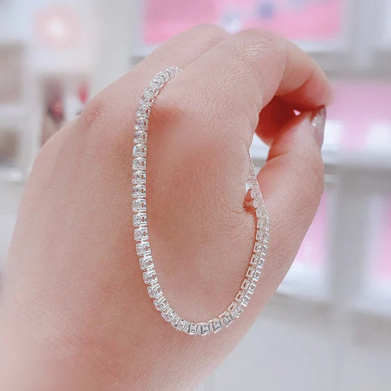 Esta Pulseira Brilho Cintilante em prata 925 apresenta pinças quadradas e é decorada com uma linha ousada de zircônias cúbicas transparentes para fazer uma declaração adequada para qualquer ocasião. Use-o sozinho ou empilhe pulseiras de diferentes cores e acabamentos de metal para um visual moderno.