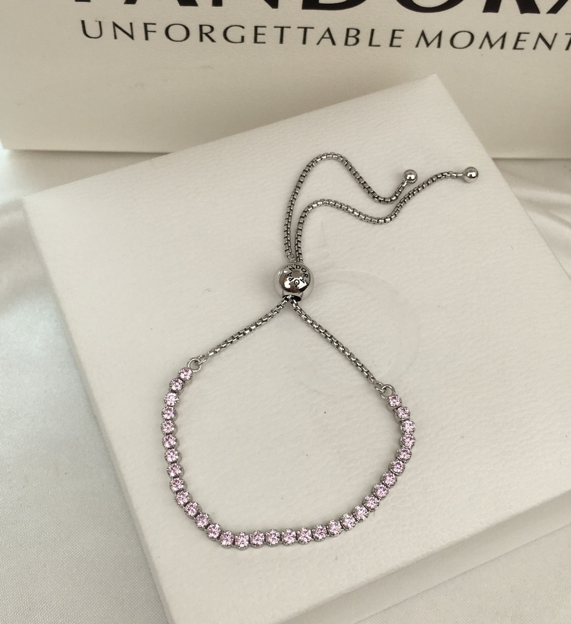 Esta brilhante pulseira ajustável é irresistível para qualquer mulher. Uma versão moderna da pulseira de tênis clássica, a peça delicada é feita a partir de Pandora Rose. A pulseira é habilmente decorado com pedras de zircônia cúbica incolores que adicionam um brilho sutil a qualquer visual e seu fecho ajustável permite que ele se encaixe perfeitamente em qualquer pulso.