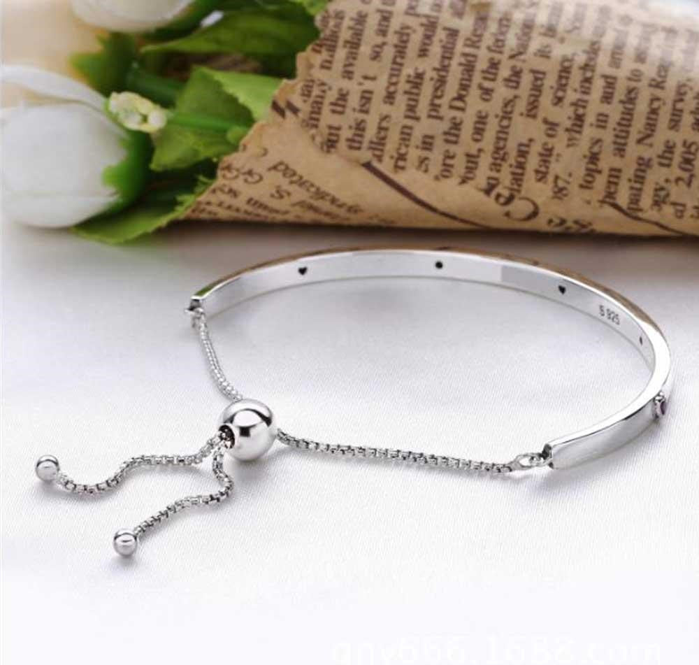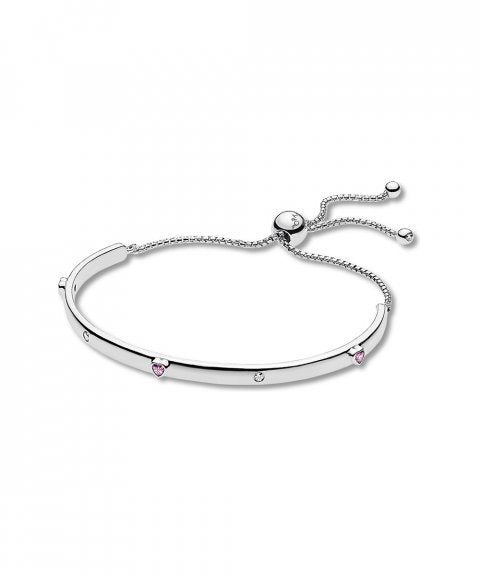 Adote uma abordagem minimalista ao estilo com esta elegante pulseira de prata 925, decorada com corações românticos de pedra rosa.