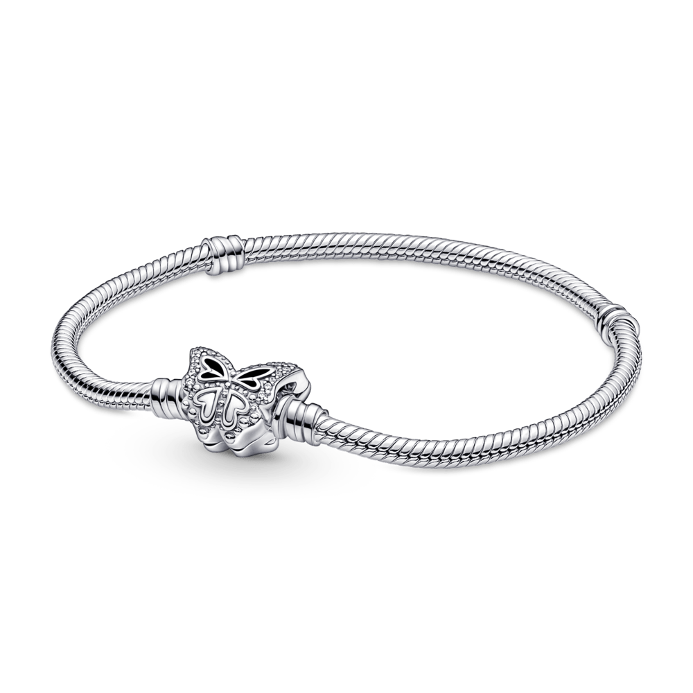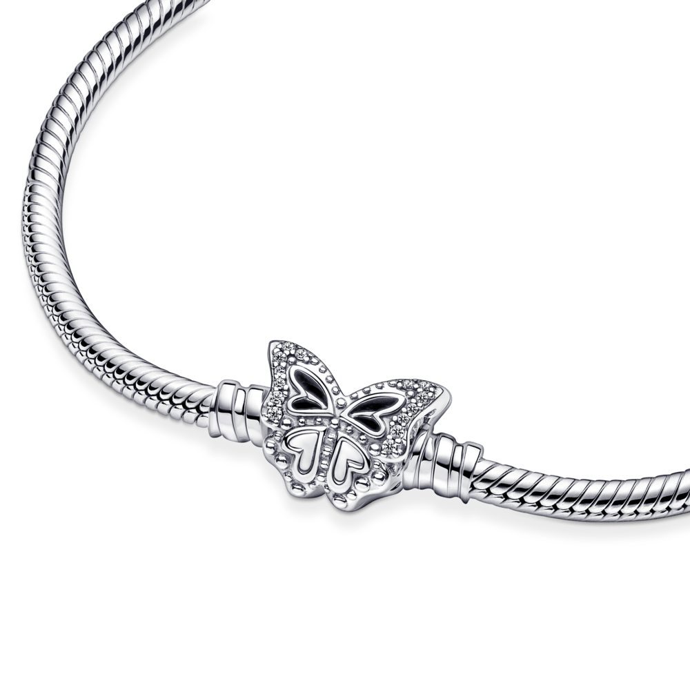Conte sua história de primavera e inspire-se com a transformação com nosso Bracelete de Trama com Fecho de Borboleta Moments em prata de lei. Detalhes vazados de coração em alto-relevo e a brilhante zircônia cúbica transparente em lapidação brilhante, em contas, conferem profundidade e dimensão às asas da borboleta. Combine até 18 charms no bracelete e leve momentos primaveris com você aonde for. Combine-o com outras peças em prata de lei como nossos brincos de Argola Borboleta Azul.