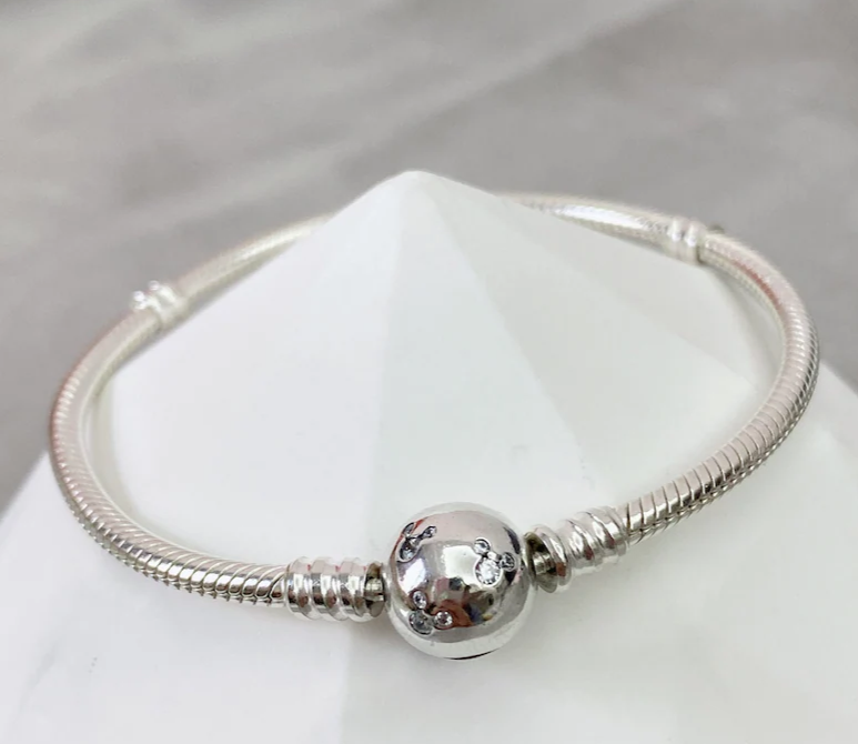 Torne os Momentos ainda mais mágicos com esta pulseira da Disney. Finamente trabalhada em prata de lei, ela apresenta um fecho de esfera embelezado com silhuetas de Mickey Mouse sutilmente cintilantes - uma homenagem impressionante ao personagem icônico da Disney.