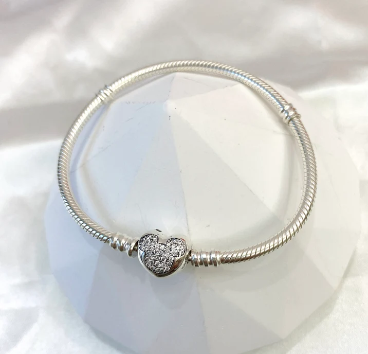 Acredite na magia com a pulseira com fecho de coração de Mickey Mouse. Com acabamento à mão em prata de 925, este estilo inclui um fecho em forma de coração com a silhueta do Mickey Mouse na frente decorada com pedras claras. A parte de trás polida do fecho inclui um contorno gravado do personagem.