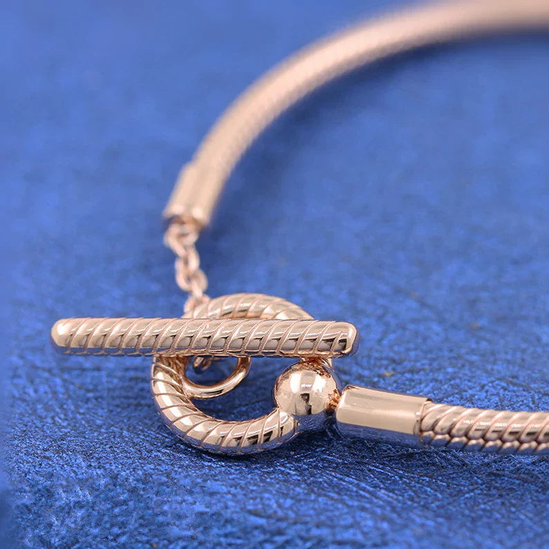 Construa sua coleção com a Pulseira Moments T-Bar. Com acabamento à mão em prata de lei, esta peça é uma versão atualizada da icônica pulseira Moments. Apresentando um fecho de círculo duplo com barra em T, enrole a barra em T através do círculo menor para se certificar de que o fecho da pulseira está bem fechado. Incluindo um padrão de corrente de cobra nas partes rígidas da pulseira, use esta peça com até 15-20 Charms.